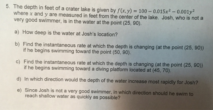 Solved 5 The Depth In Feet Of A Crater Lake Is Given By